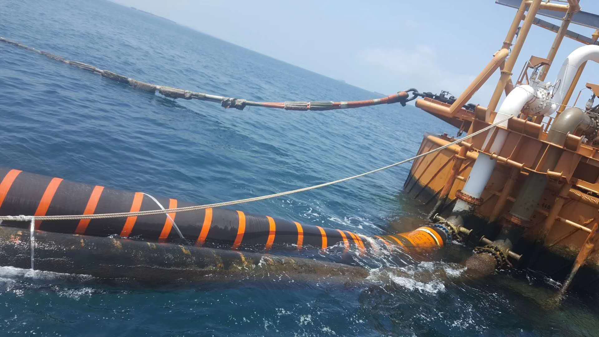 海洋输油胶管是一种用于在海洋环境中输送石油的管道系统,具有极高的耐压性和耐腐蚀性,能够在极端环境下稳定工作。其主要由多层材料构成,内层通常采用高强度的聚乙烯或聚氨酯材料,外层则使用特殊合成橡胶以抵御海水的侵蚀。这种设计不仅能承受高达数千磅的压力,还能在极端的海洋环境中保持稳定的性能。